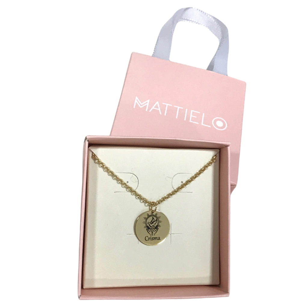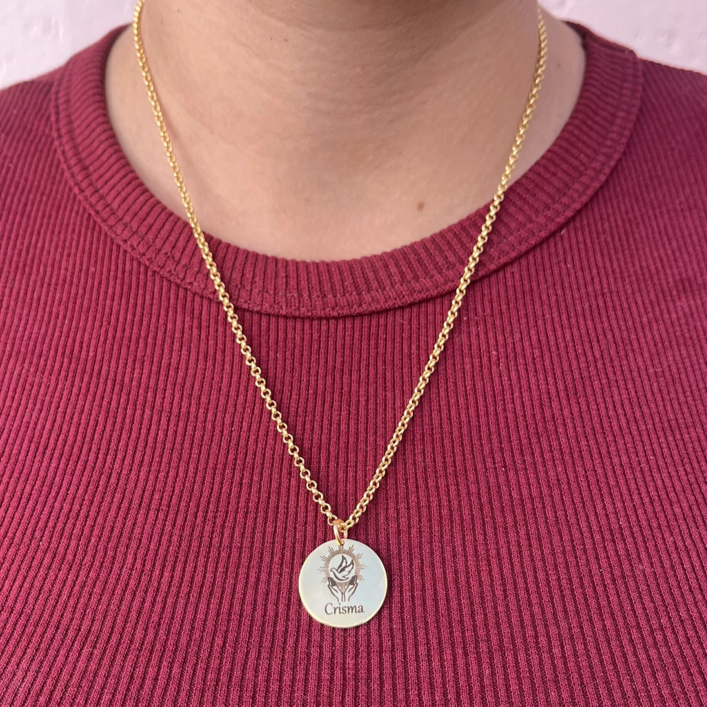 Com design elegante e cheio de simbolismo, este colar traz uma medalha especial representando o sacramento da Crisma. Uma joia significativa, ideal para presentear quem está dando um passo importante na vida espiritual. Um presente que carrega devoção, amor e bênçãos.