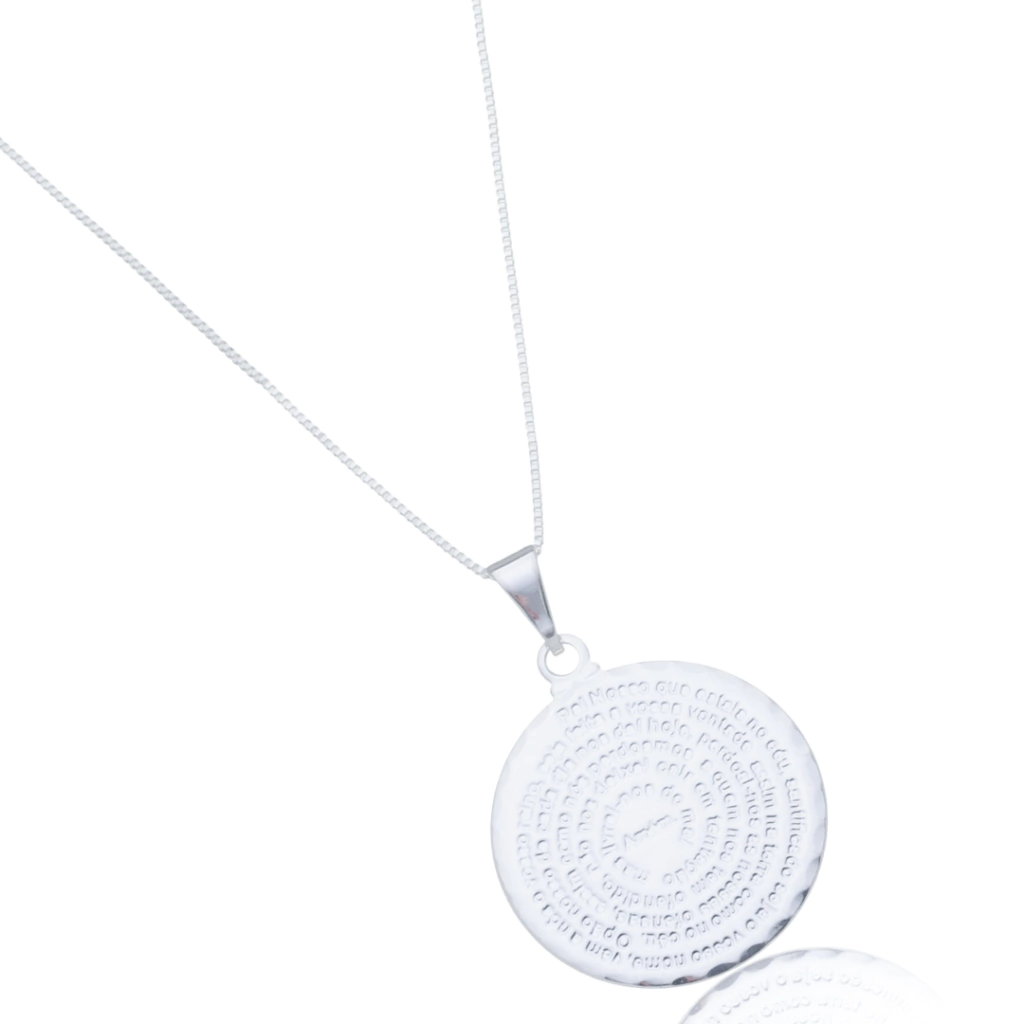 Colar na corrente veneziana com pingente de medalha gravado a oração "Pai Nosso".