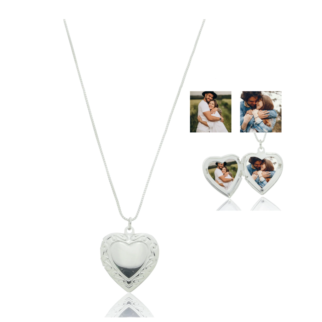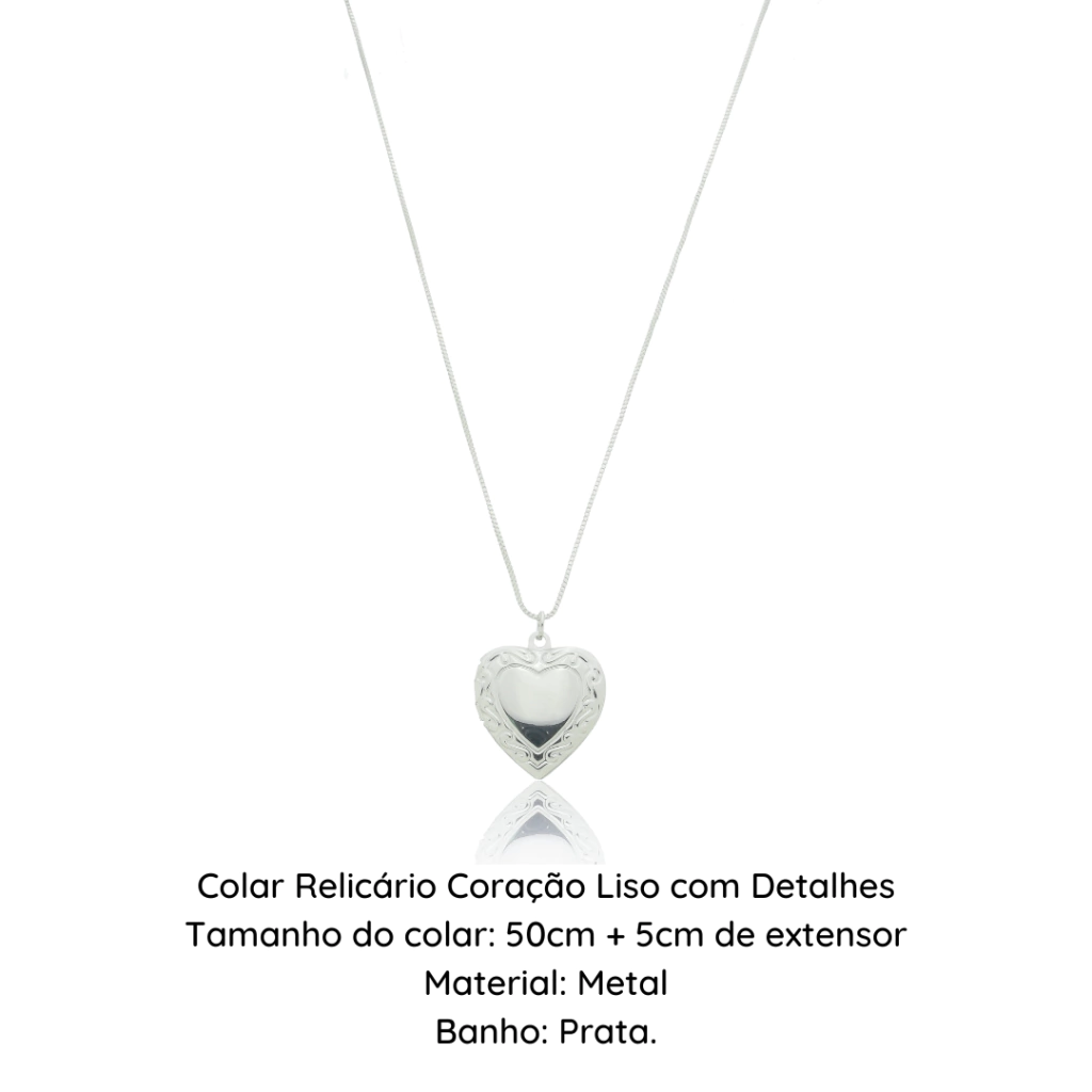 Apresentando nosso elegante colar relicário, uma verdadeira peça de joia para guardar memórias preciosas. O pingente deste colar é cuidadosamente esculpido no formato de um coração, com uma superfície lisa no centro e detalhes delicados ao redor da borda, adicionando um toque de sofisticação e charme. O destaque deste relicário é sua capacidade de abrir e fechar, permitindo que você guarde duas fotos queridas dentro dele. Esta característica única torna o colar não apenas uma peça de joia, mas também um símbolo de memórias afetivas e momentos especiais. A corrente veneziana complementa perfeitamente o design do relicário, proporcionando um suporte elegante e durável para o pingente. A corrente é conhecida por sua beleza clássica e brilho suave, adicionando um toque de elegância discreta ao colar. Este colar relicário é uma escolha perfeita para quem deseja manter seus entes queridos próximos ao coração. Seja para usar como uma lembrança de um momento especial ou para presentear alguém querido com um gesto de carinho, este colar certamente será apreciado por sua beleza e significado emocional.