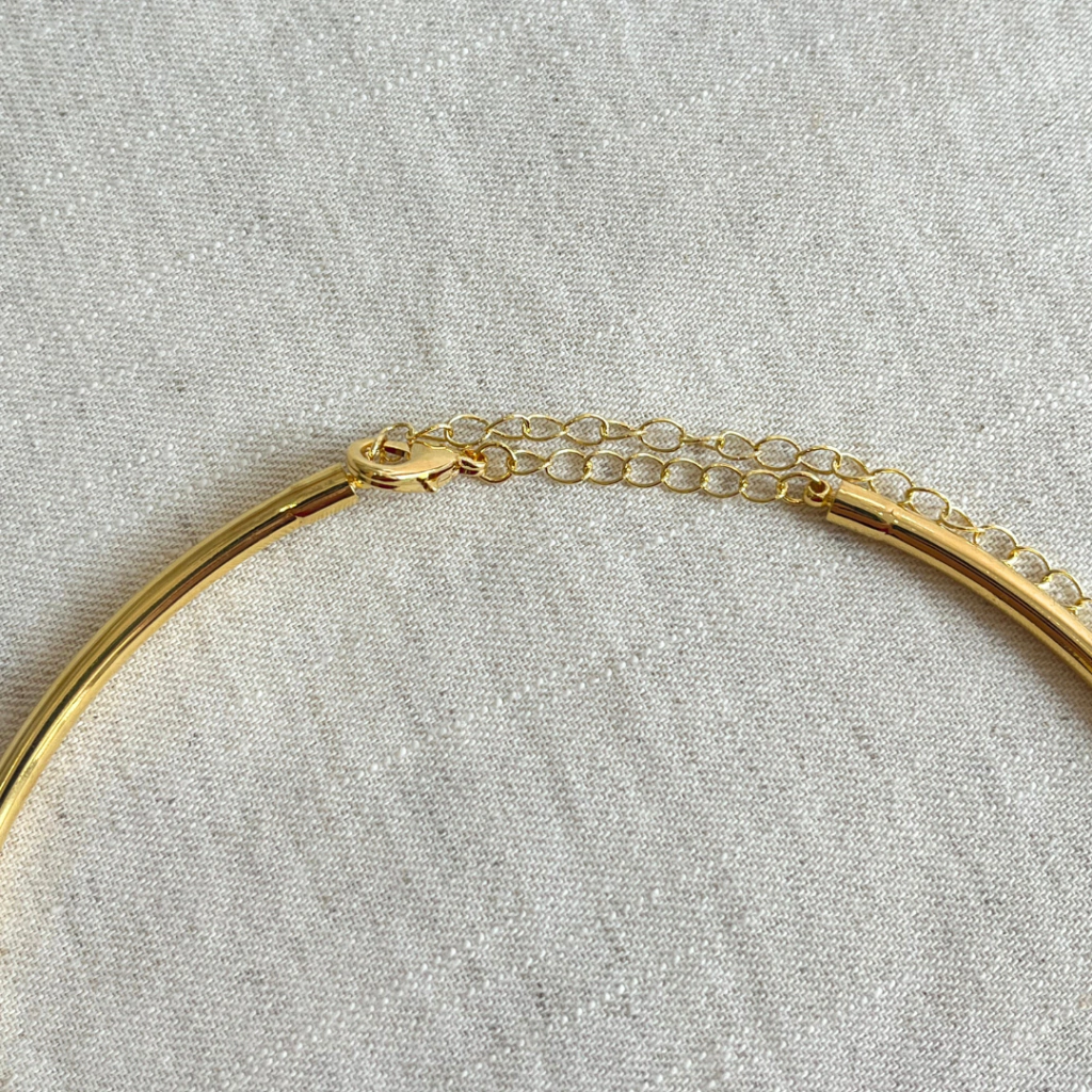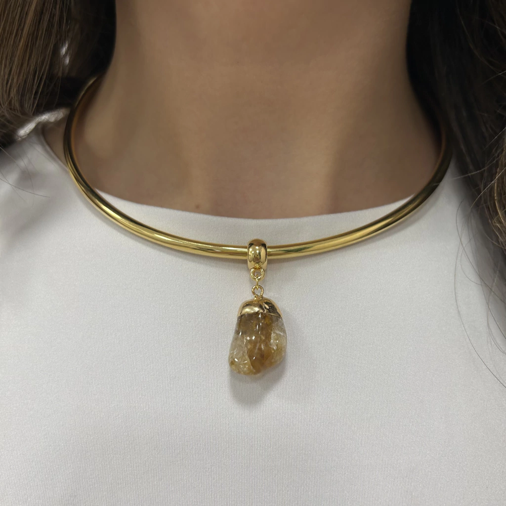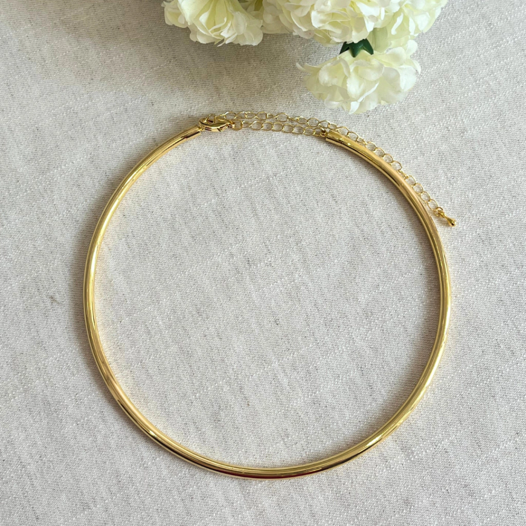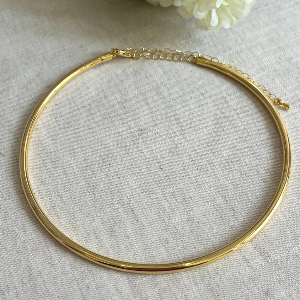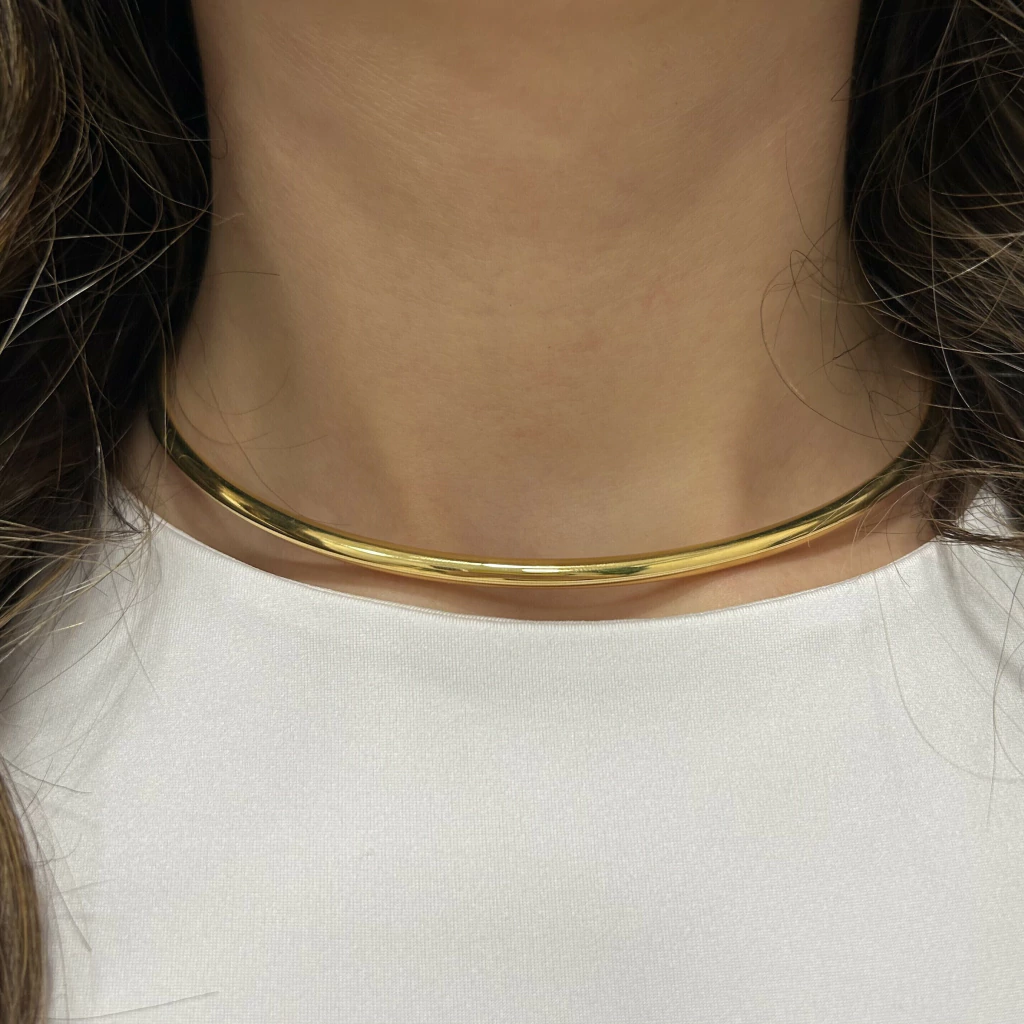 Minimalista e poderosa, a gargantilha de aro rígido é o toque de sofisticação que transforma qualquer look. Com seu design moderno e estruturado, ela valoriza o colo com elegância e presença. Perfeita para quem ama peças impactantes e atemporais.