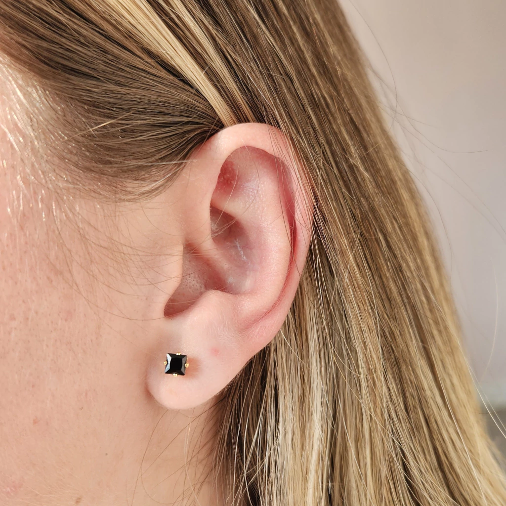 Brinco Quadrado com Zircônia Preta: Moderno e sofisticado, o brinco de quadrado é adornado com uma zircônia preta que oferece um contraste elegante e um toque de mistério.