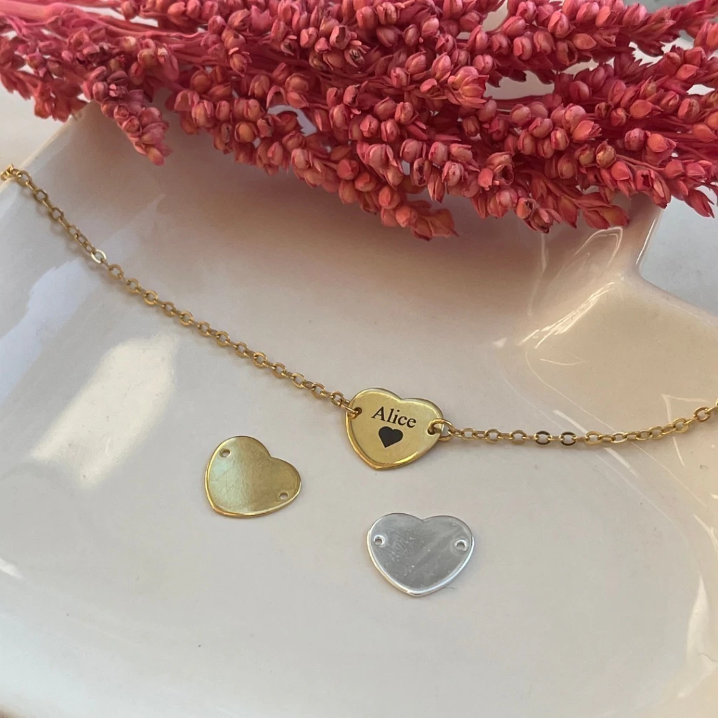 Personalize o pingente em formato de coração com nome, inicial, data ou ano, criando uma peça única e repleta de memórias especiais. Disponível com banho de ouro ou prata, essa pulseira é feita em metal hipoalergênico, ideal para peles sensíveis.